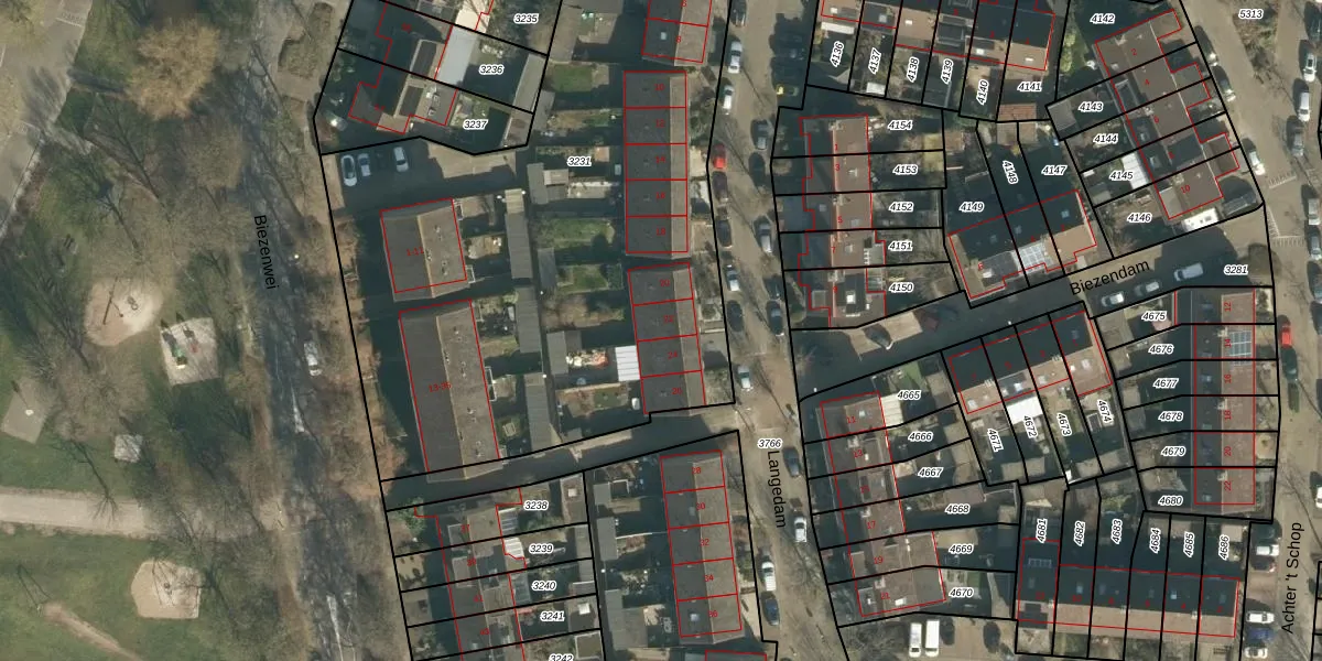 Het perceel waarop Langedam 22 staat heeft een oppervlakte van 3568 m². Dit is een zeer groot perceel. De perceeloppervlakte wordt geregistreerd door het Kadaster. Gedetailleerde informatie over de maten van dit perceel kunt u vinden in het rapport Kadastrale kaart met maatvoering van Langedam 22.