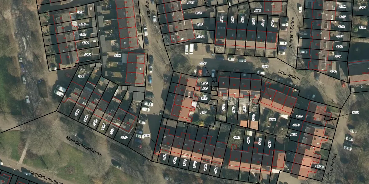 Gebruik de zoekbalk of klik op een perceel voor informatie over de adressen binnen dit perceel.