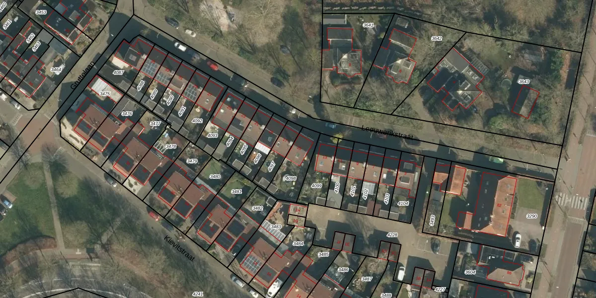 Het perceel waarop Leeuwerikstraat 15 staat heeft een oppervlakte van 219 m². Dit is een middelgroot perceel. De perceeloppervlakte wordt geregistreerd door het Kadaster. Gedetailleerde informatie over de maten van dit perceel kunt u vinden in het rapport Kadastrale kaart met maatvoering van Leeuwerikstraat 15.