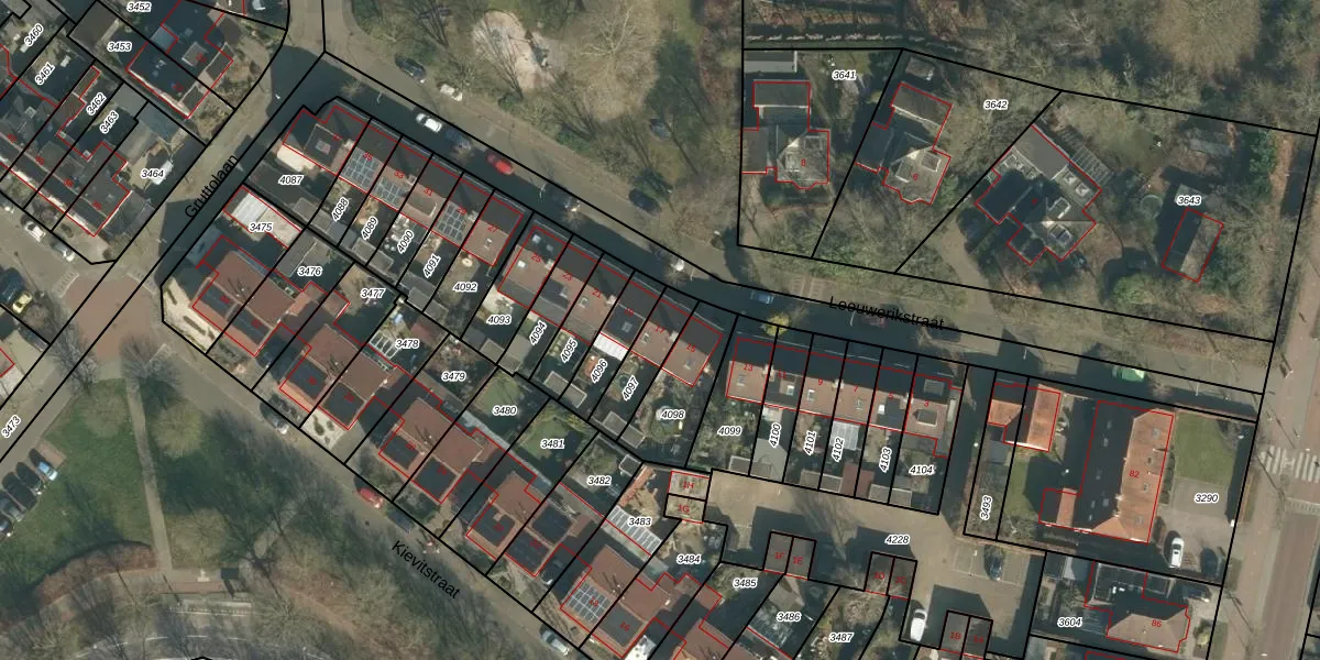 Gebruik de zoekbalk of klik op een perceel voor informatie over de adressen binnen dit perceel.