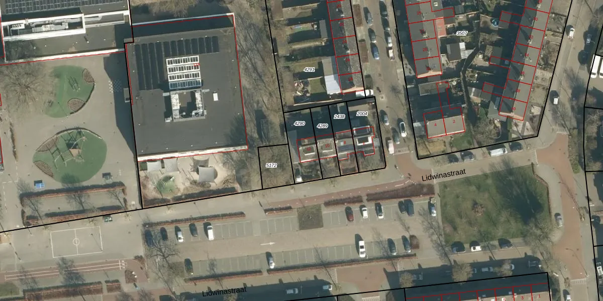 Lidwinastraat 12 is gelegen op kadastraal perceel VUG00D4290. Deze kadastrale aanduiding is uniek en wordt gebruikt door het Kadaster om eigendomsrechten en andere zakelijke rechten vast te leggen. Het perceel maakt onderdeel uit van de kadastrale gemeente Vught.