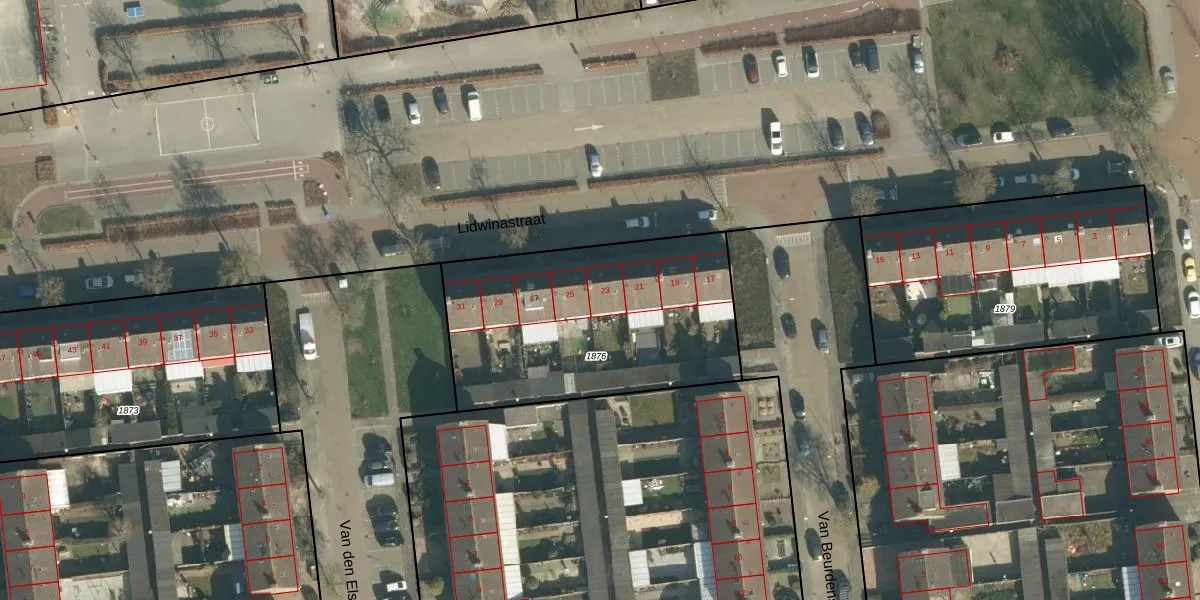 Het perceel waarop Lidwinastraat 23 staat heeft een oppervlakte van 1195 m². Dit is een zeer groot perceel. De perceeloppervlakte wordt geregistreerd door het Kadaster. Gedetailleerde informatie over de maten van dit perceel kunt u vinden in het rapport Kadastrale kaart met maatvoering van Lidwinastraat 23.