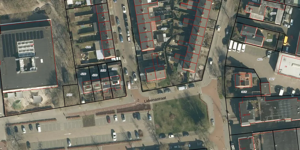 Lidwinastraat 4 is gelegen op kadastraal perceel VUG00D3507. Deze kadastrale aanduiding is uniek en wordt gebruikt door het Kadaster om eigendomsrechten en andere zakelijke rechten vast te leggen. Het perceel maakt onderdeel uit van de kadastrale gemeente Vught.