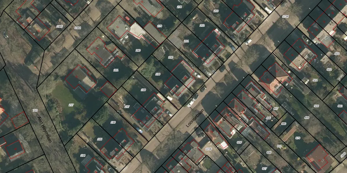 Het perceel waarop Loonsebaan 48 staat heeft een oppervlakte van 425 m². Dit is een groot perceel. De perceeloppervlakte wordt geregistreerd door het Kadaster. Gedetailleerde informatie over de maten van dit perceel kunt u vinden in het rapport Kadastrale kaart met maatvoering van Loonsebaan 48.