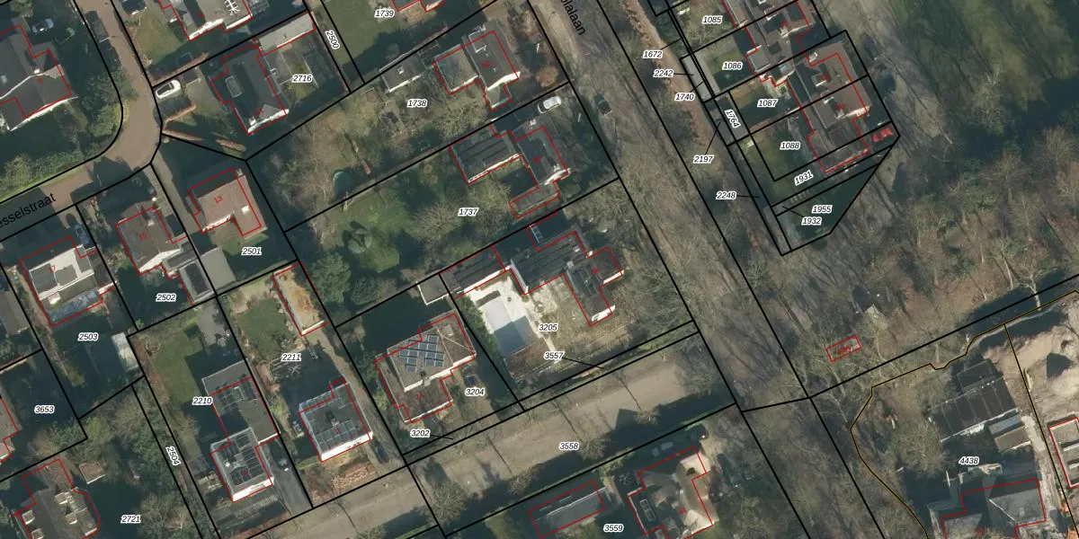 Het perceel waarop Loyolalaan 46 staat heeft een oppervlakte van 1088 m². Dit is een zeer groot perceel. De perceeloppervlakte wordt geregistreerd door het Kadaster. Gedetailleerde informatie over de maten van dit perceel kunt u vinden in het rapport Kadastrale kaart met maatvoering van Loyolalaan 46.