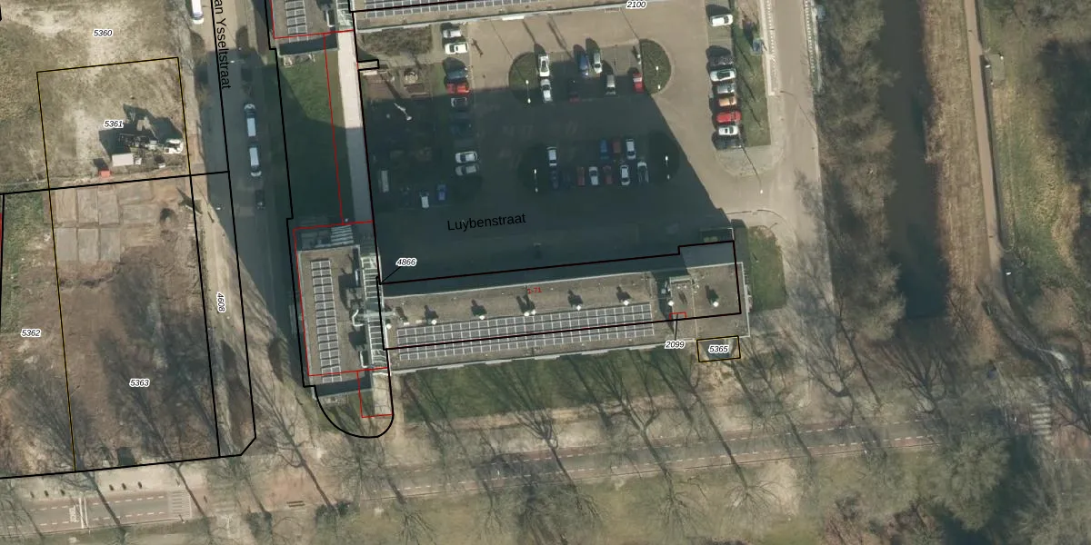 Het perceel waarop Luybenstraat 1-F staat heeft een oppervlakte van 801 m². Dit is een groot perceel. De perceeloppervlakte wordt geregistreerd door het Kadaster. Gedetailleerde informatie over de maten van dit perceel kunt u vinden in het rapport Kadastrale kaart met maatvoering van Luybenstraat 1-F.
