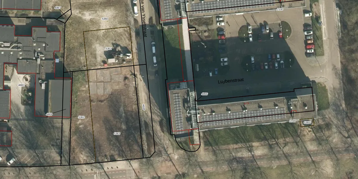 Luybenstraat 53 is gelegen op kadastraal perceel VUG00D4867. Deze kadastrale aanduiding is uniek en wordt gebruikt door het Kadaster om eigendomsrechten en andere zakelijke rechten vast te leggen. Het perceel maakt onderdeel uit van de kadastrale gemeente Vught.