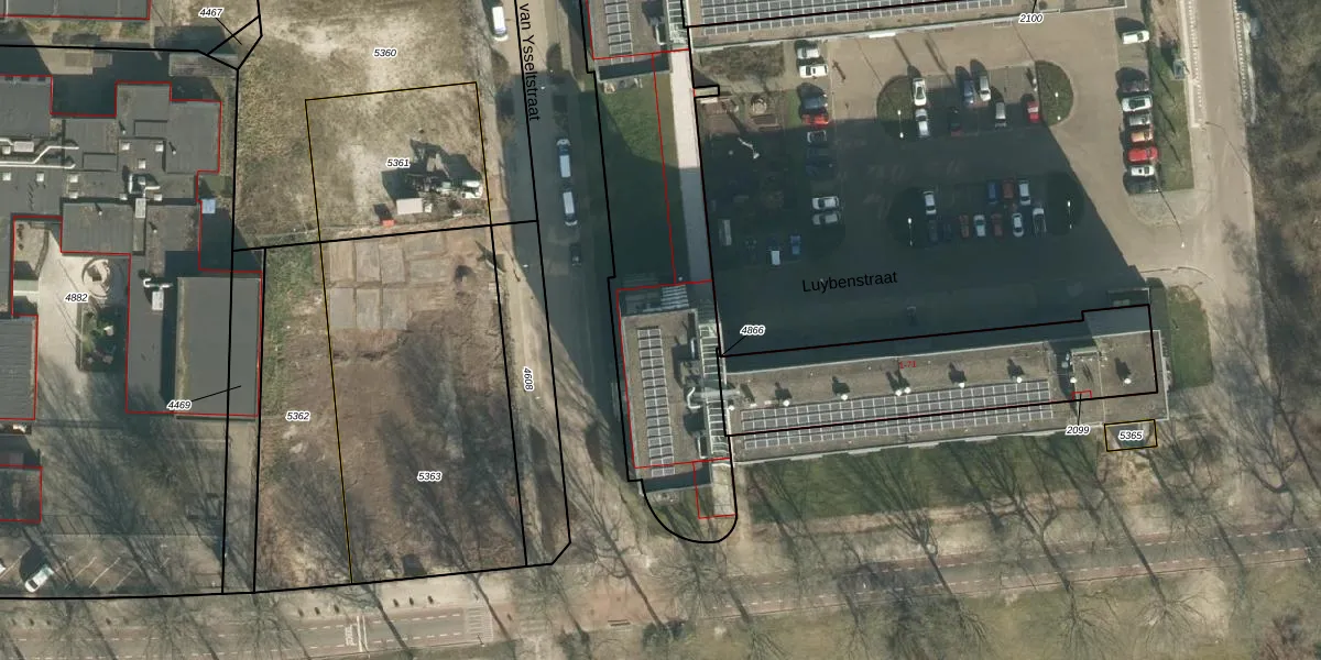 Het perceel waarop Luybenstraat 56 staat heeft een oppervlakte van 2790 m². Dit is een zeer groot perceel. De perceeloppervlakte wordt geregistreerd door het Kadaster. Gedetailleerde informatie over de maten van dit perceel kunt u vinden in het rapport Kadastrale kaart met maatvoering van Luybenstraat 56.