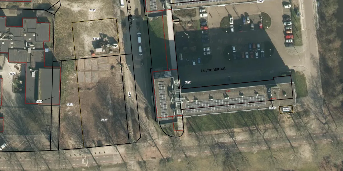 Het perceel waarop Luybenstraat 60 staat heeft een oppervlakte van 2790 m². Dit is een zeer groot perceel. De perceeloppervlakte wordt geregistreerd door het Kadaster. Gedetailleerde informatie over de maten van dit perceel kunt u vinden in het rapport Kadastrale kaart met maatvoering van Luybenstraat 60.