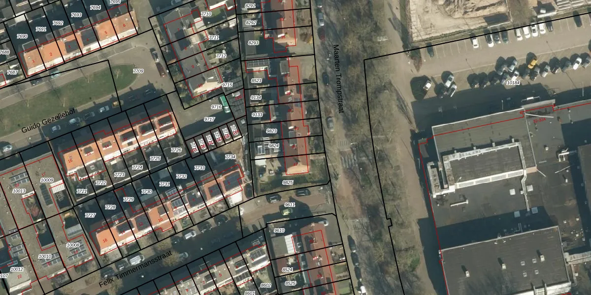Maarten Trompstraat 45 is gelegen op kadastraal perceel VUG00B9824. Deze kadastrale aanduiding is uniek en wordt gebruikt door het Kadaster om eigendomsrechten en andere zakelijke rechten vast te leggen. Het perceel maakt onderdeel uit van de kadastrale gemeente Vught.