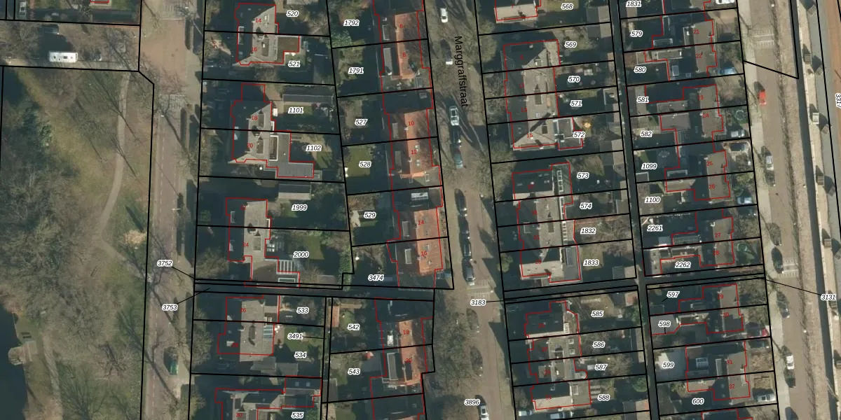 Het perceel waarop Marggraffstraat 14 staat heeft een oppervlakte van 270 m². Dit is een middelgroot perceel. De perceeloppervlakte wordt geregistreerd door het Kadaster. Gedetailleerde informatie over de maten van dit perceel kunt u vinden in het rapport Kadastrale kaart met maatvoering van Marggraffstraat 14.