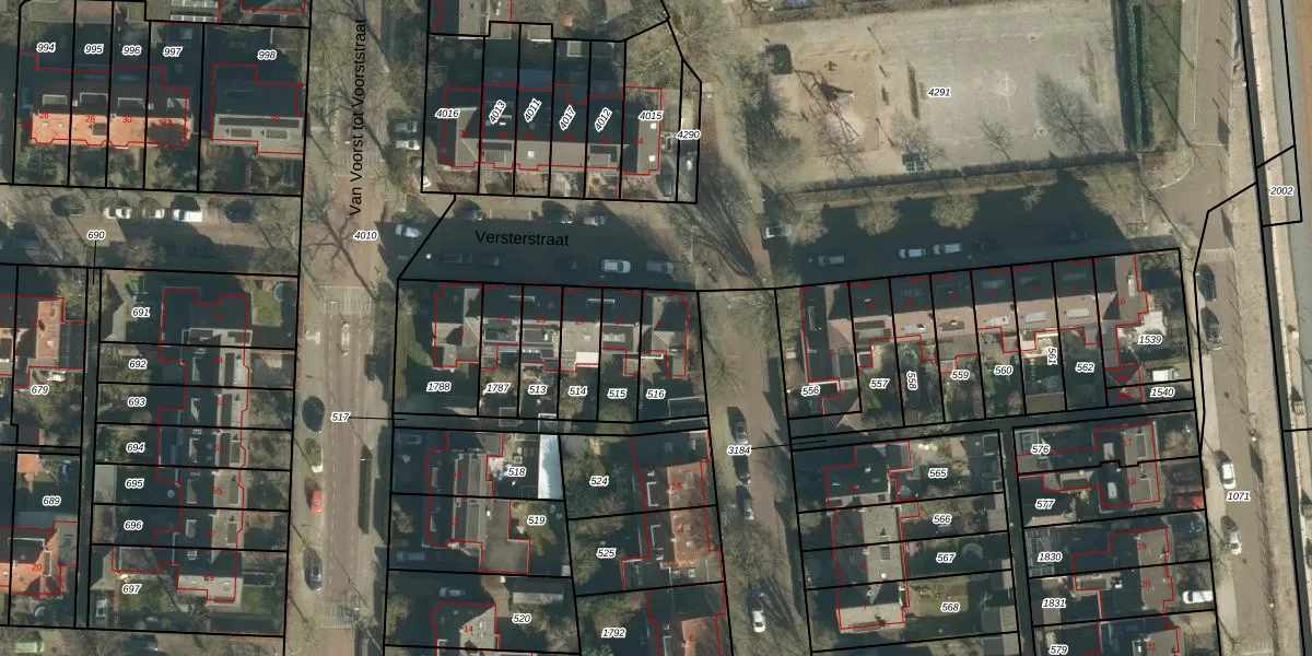 Gebruik de zoekbalk of klik op een perceel voor informatie over de adressen binnen dit perceel.