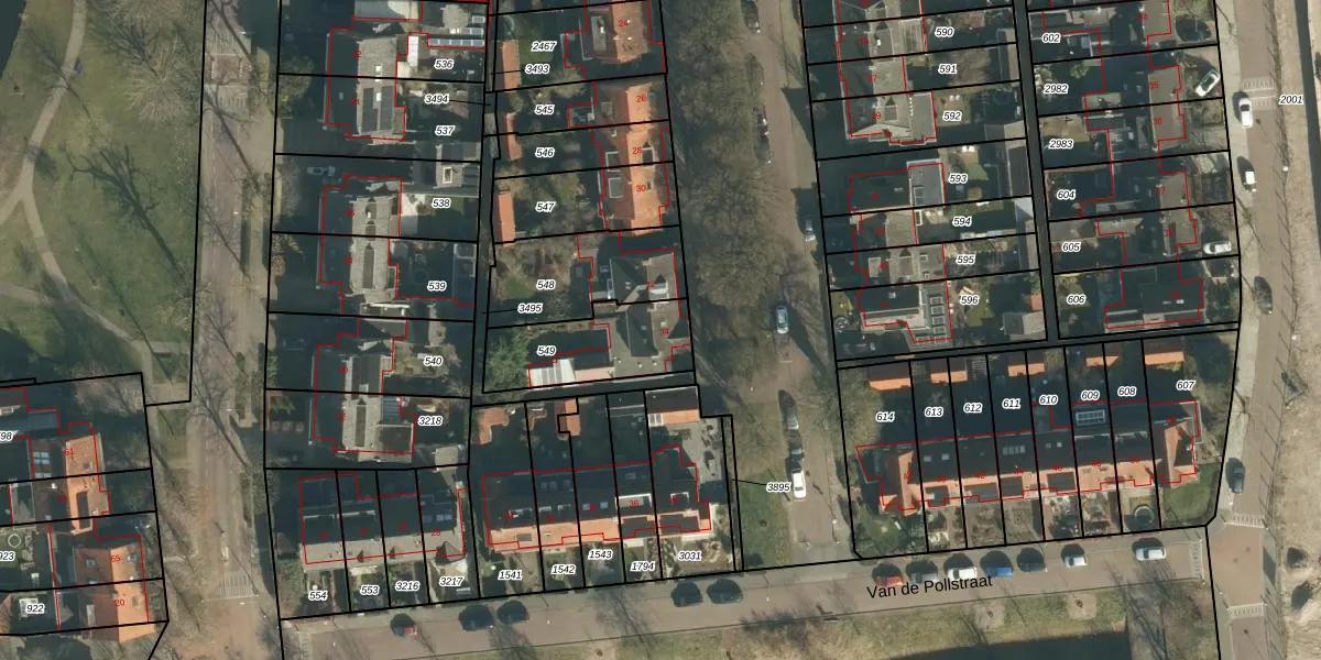 Gebruik de zoekbalk of klik op een perceel voor informatie over de adressen binnen dit perceel.