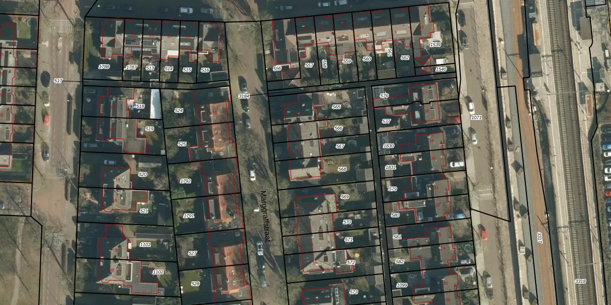 Het perceel waarop Marggraffstraat 5 staat heeft een oppervlakte van 196 m². Dit is een middelgroot perceel. De perceeloppervlakte wordt geregistreerd door het Kadaster. Gedetailleerde informatie over de maten van dit perceel kunt u vinden in het rapport Kadastrale kaart met maatvoering van Marggraffstraat 5.