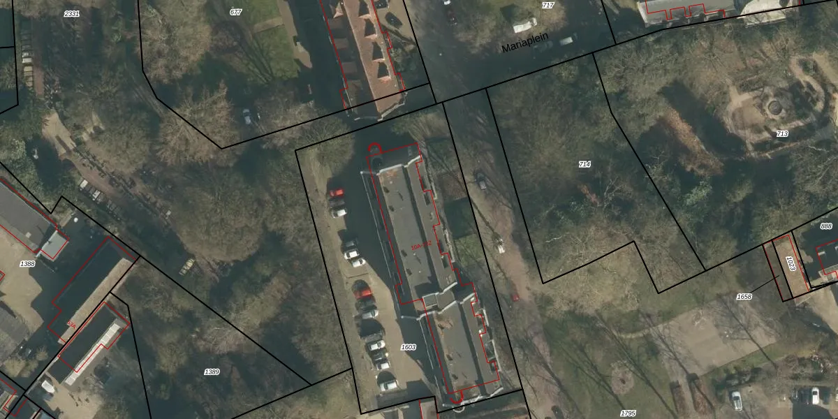 Het perceel waarop Mariaplein 10-G staat heeft een oppervlakte van 2567 m². Dit is een zeer groot perceel. De perceeloppervlakte wordt geregistreerd door het Kadaster. Gedetailleerde informatie over de maten van dit perceel kunt u vinden in het rapport Kadastrale kaart met maatvoering van Mariaplein 10-G.