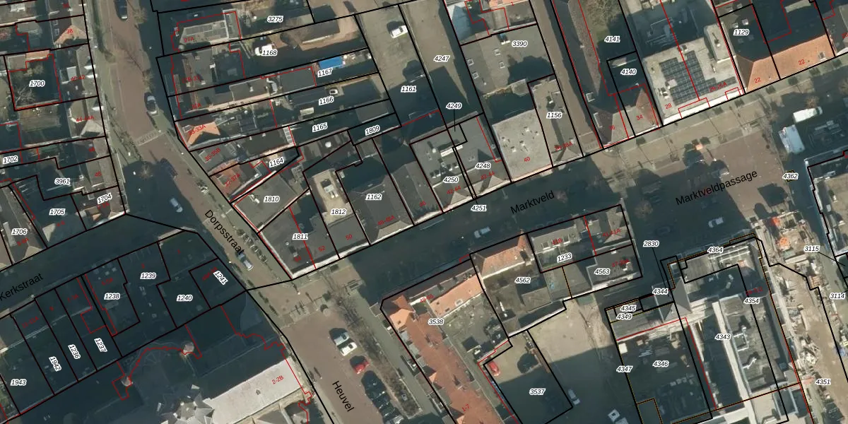 Het perceel waarop Marktveld 46 staat heeft een oppervlakte van 500 m². Dit is een groot perceel. De perceeloppervlakte wordt geregistreerd door het Kadaster. Gedetailleerde informatie over de maten van dit perceel kunt u vinden in het rapport Kadastrale kaart met maatvoering van Marktveld 46.