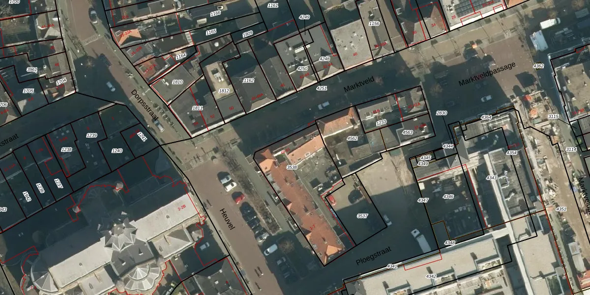 Het perceel waarop Marktveld 49 staat heeft een oppervlakte van 803 m². Dit is een groot perceel. De perceeloppervlakte wordt geregistreerd door het Kadaster. Gedetailleerde informatie over de maten van dit perceel kunt u vinden in het rapport Kadastrale kaart met maatvoering van Marktveld 49.