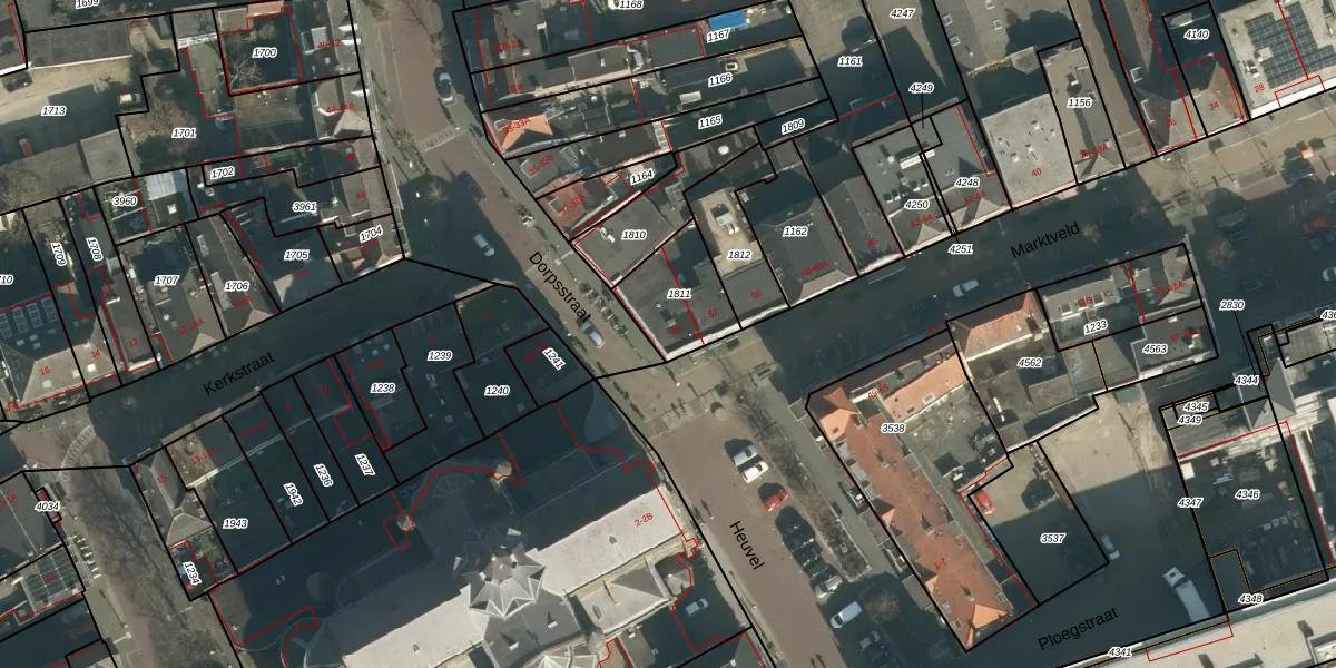 Het perceel waarop Marktveld 54 staat heeft een oppervlakte van 225 m². Dit is een middelgroot perceel. De perceeloppervlakte wordt geregistreerd door het Kadaster. Gedetailleerde informatie over de maten van dit perceel kunt u vinden in het rapport Kadastrale kaart met maatvoering van Marktveld 54.