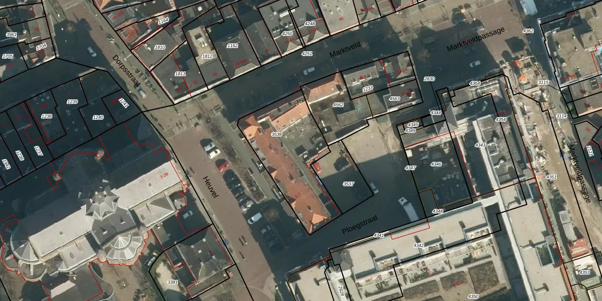 Het perceel waarop Marktveld 57 staat heeft een oppervlakte van 803 m². Dit is een groot perceel. De perceeloppervlakte wordt geregistreerd door het Kadaster. Gedetailleerde informatie over de maten van dit perceel kunt u vinden in het rapport Kadastrale kaart met maatvoering van Marktveld 57.
