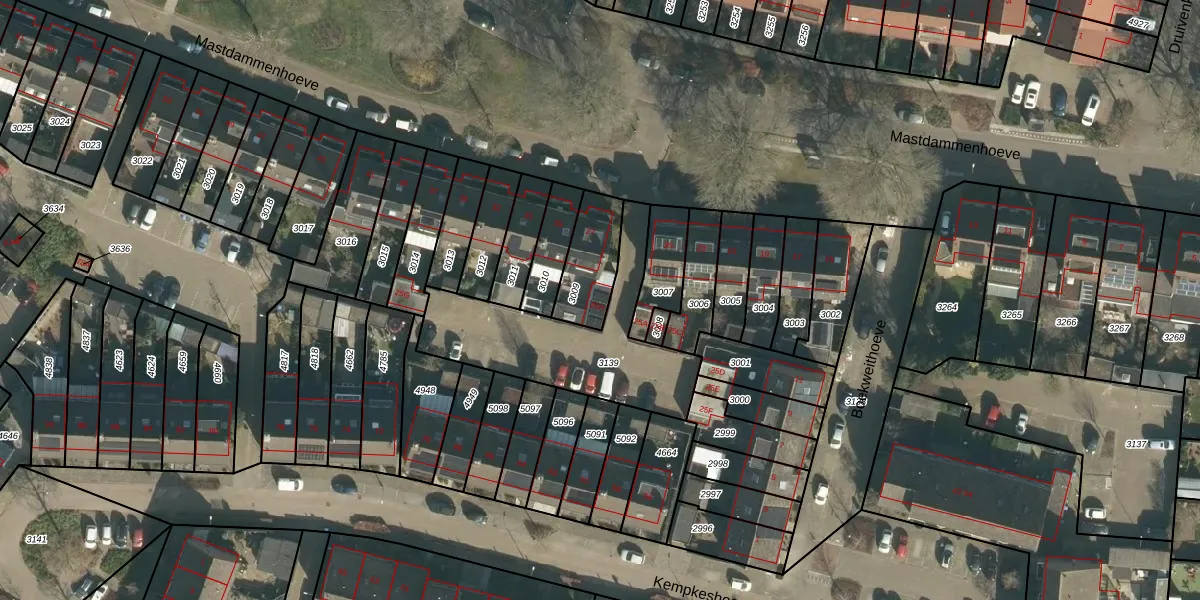 Het perceel waarop Mastdammenhoeve 25-H staat heeft een oppervlakte van 181 m². Dit is een middelgroot perceel. De perceeloppervlakte wordt geregistreerd door het Kadaster. Gedetailleerde informatie over de maten van dit perceel kunt u vinden in het rapport Kadastrale kaart met maatvoering van Mastdammenhoeve 25-H.