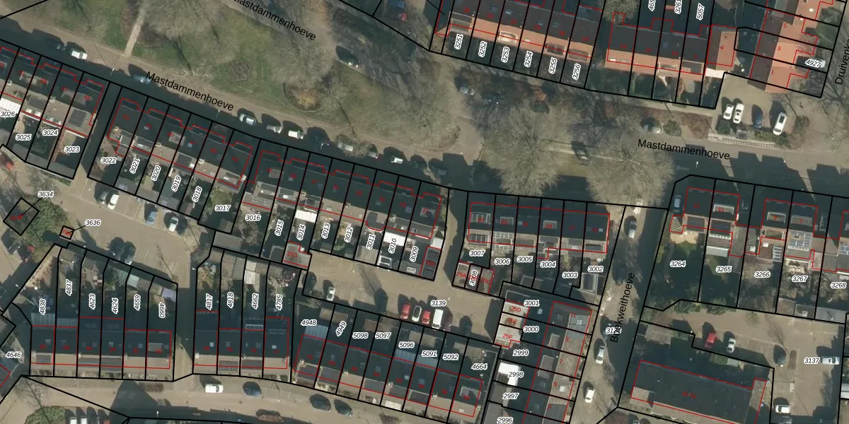 Het perceel waarop Mastdammenhoeve 27 staat heeft een oppervlakte van 181 m². Dit is een middelgroot perceel. De perceeloppervlakte wordt geregistreerd door het Kadaster. Gedetailleerde informatie over de maten van dit perceel kunt u vinden in het rapport Kadastrale kaart met maatvoering van Mastdammenhoeve 27.