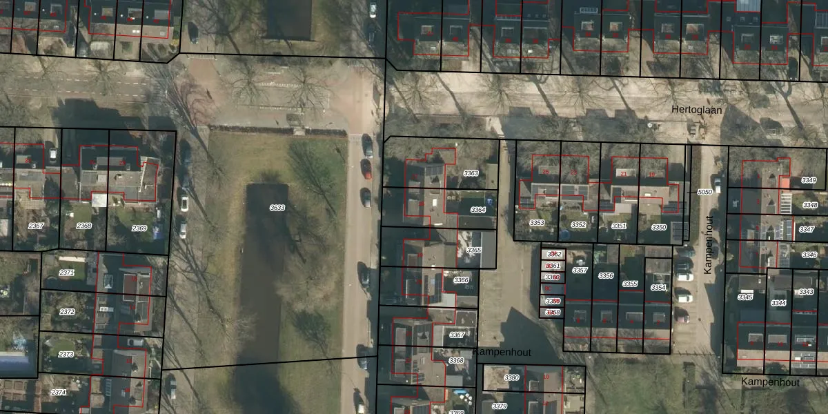 Gebruik de zoekbalk of klik op een perceel voor informatie over de adressen binnen dit perceel.