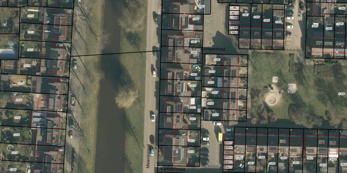 Gebruik de zoekbalk of klik op een perceel voor informatie over de adressen binnen dit perceel.