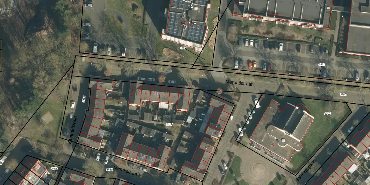 Merpatistraat 25 is gelegen op kadastraal perceel VUG00E3417. Deze kadastrale aanduiding is uniek en wordt gebruikt door het Kadaster om eigendomsrechten en andere zakelijke rechten vast te leggen. Het perceel maakt onderdeel uit van de kadastrale gemeente Vught.