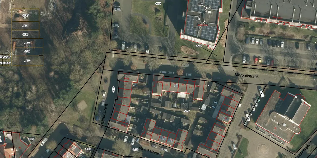 Merpatistraat 39 is gelegen op kadastraal perceel VUG00E3417. Deze kadastrale aanduiding is uniek en wordt gebruikt door het Kadaster om eigendomsrechten en andere zakelijke rechten vast te leggen. Het perceel maakt onderdeel uit van de kadastrale gemeente Vught.
