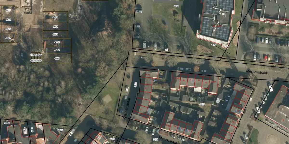 Merpatistraat 43 is gelegen op kadastraal perceel VUG00E3417. Deze kadastrale aanduiding is uniek en wordt gebruikt door het Kadaster om eigendomsrechten en andere zakelijke rechten vast te leggen. Het perceel maakt onderdeel uit van de kadastrale gemeente Vught.