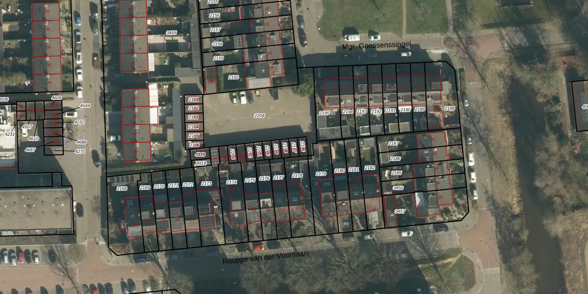 Het perceel waarop Mgr. Goossenssingel 23-V staat heeft een oppervlakte van 19 m². Dit is een klein perceel. De perceeloppervlakte wordt geregistreerd door het Kadaster. Gedetailleerde informatie over de maten van dit perceel kunt u vinden in het rapport Kadastrale kaart met maatvoering van Mgr. Goossenssingel 23-V.