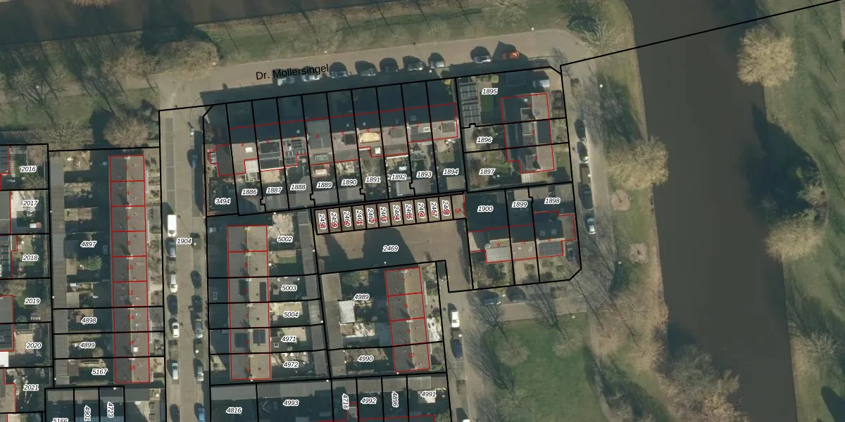 Gebruik de zoekbalk of klik op een perceel voor informatie over de adressen binnen dit perceel.