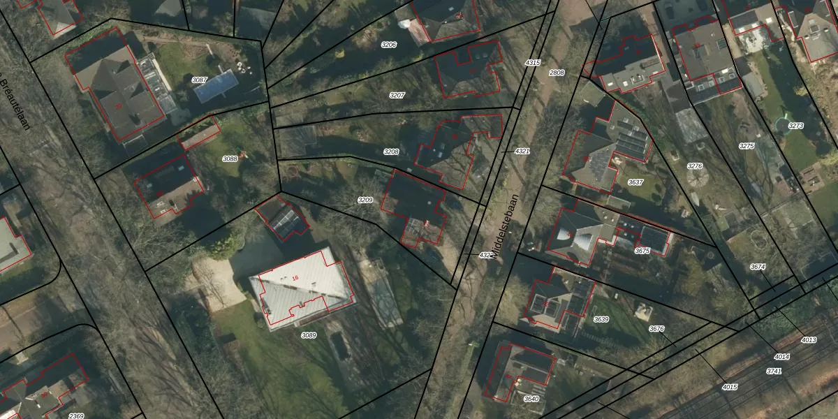 Middelstebaan 21 is gelegen op kadastraal perceel VUG00E3209. Deze kadastrale aanduiding is uniek en wordt gebruikt door het Kadaster om eigendomsrechten en andere zakelijke rechten vast te leggen. Het perceel maakt onderdeel uit van de kadastrale gemeente Vught.