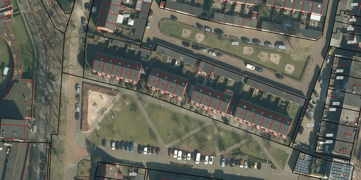 Molenakker 22 is gelegen op kadastraal perceel VUG00E2977. Deze kadastrale aanduiding is uniek en wordt gebruikt door het Kadaster om eigendomsrechten en andere zakelijke rechten vast te leggen. Het perceel maakt onderdeel uit van de kadastrale gemeente Vught.