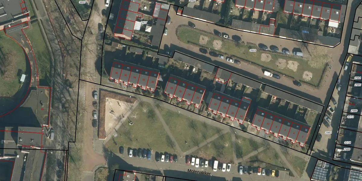Molenakker 26 is gelegen op kadastraal perceel VUG00E2977. Deze kadastrale aanduiding is uniek en wordt gebruikt door het Kadaster om eigendomsrechten en andere zakelijke rechten vast te leggen. Het perceel maakt onderdeel uit van de kadastrale gemeente Vught.