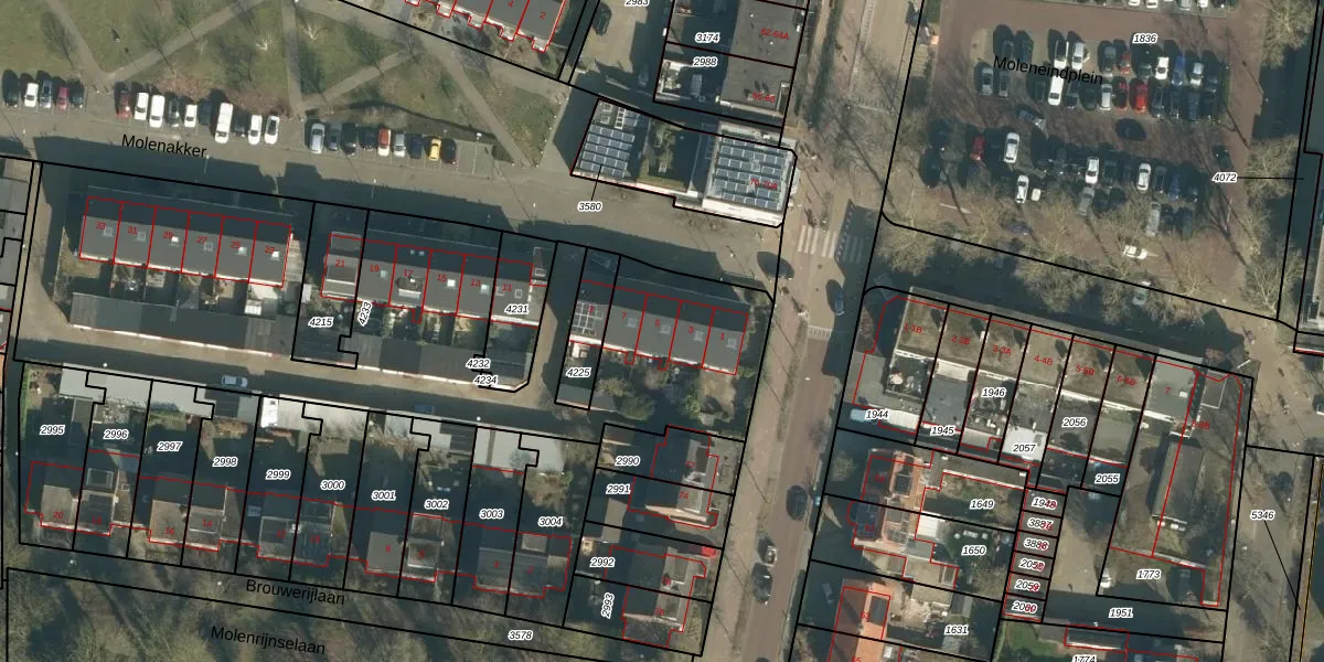 Molenakker 5 is gelegen op kadastraal perceel VUG00E4233. Deze kadastrale aanduiding is uniek en wordt gebruikt door het Kadaster om eigendomsrechten en andere zakelijke rechten vast te leggen. Het perceel maakt onderdeel uit van de kadastrale gemeente Vught.