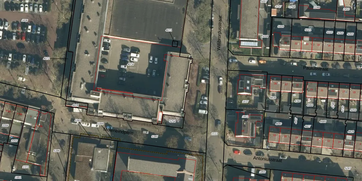 Het perceel waarop Moleneindplein 201 staat heeft een oppervlakte van 4664 m². Dit is een zeer groot perceel. De perceeloppervlakte wordt geregistreerd door het Kadaster. Gedetailleerde informatie over de maten van dit perceel kunt u vinden in het rapport Kadastrale kaart met maatvoering van Moleneindplein 201.