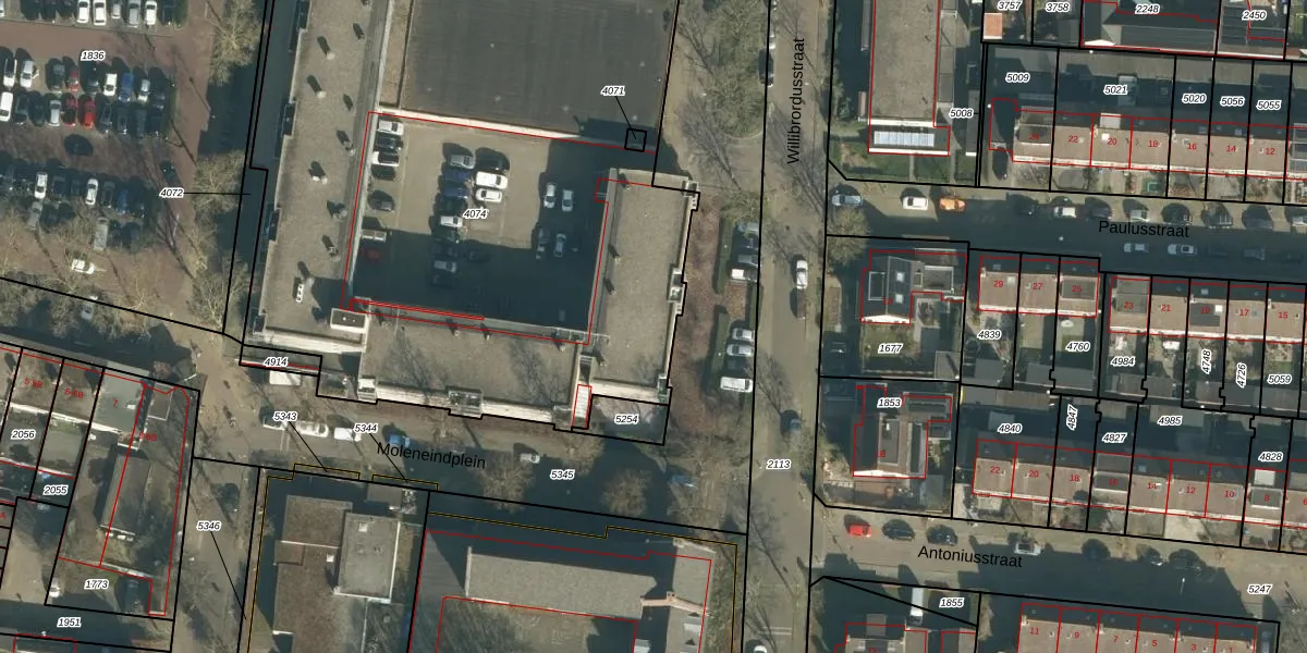 Het perceel waarop Moleneindplein 203 staat heeft een oppervlakte van 4664 m². Dit is een zeer groot perceel. De perceeloppervlakte wordt geregistreerd door het Kadaster. Gedetailleerde informatie over de maten van dit perceel kunt u vinden in het rapport Kadastrale kaart met maatvoering van Moleneindplein 203.