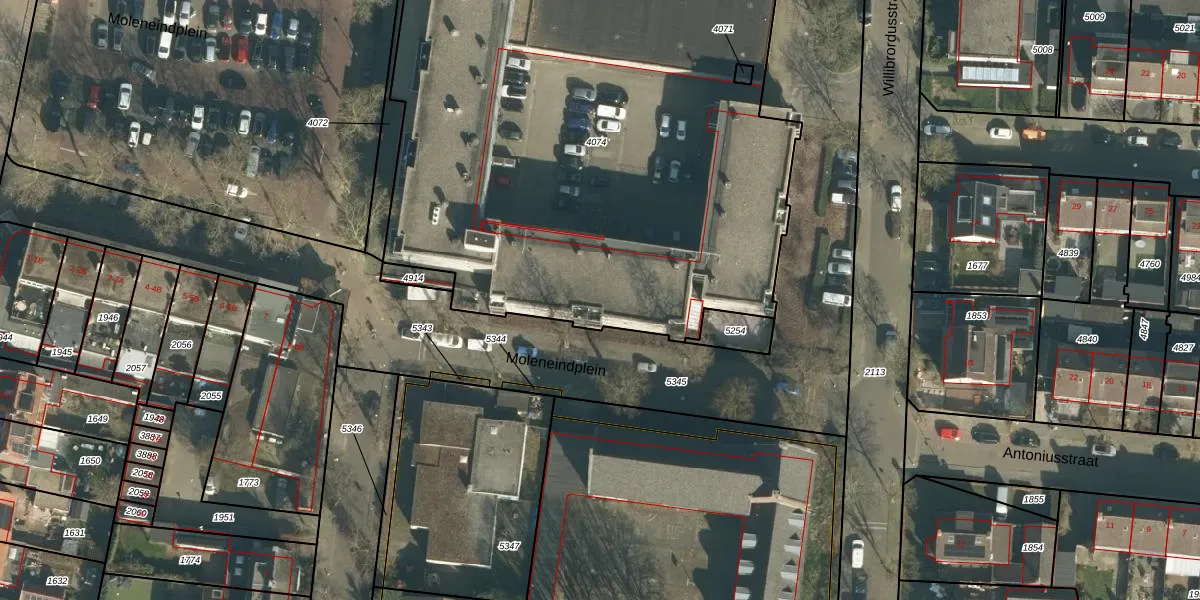 Het perceel waarop Moleneindplein 208 staat heeft een oppervlakte van 4664 m². Dit is een zeer groot perceel. De perceeloppervlakte wordt geregistreerd door het Kadaster. Gedetailleerde informatie over de maten van dit perceel kunt u vinden in het rapport Kadastrale kaart met maatvoering van Moleneindplein 208.