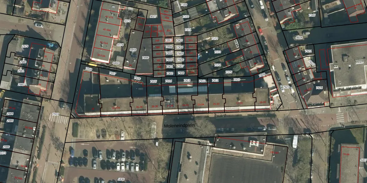 Moleneindplein 25 is gelegen op kadastraal perceel VUG00B7913. Deze kadastrale aanduiding is uniek en wordt gebruikt door het Kadaster om eigendomsrechten en andere zakelijke rechten vast te leggen. Het perceel maakt onderdeel uit van de kadastrale gemeente Vught.
