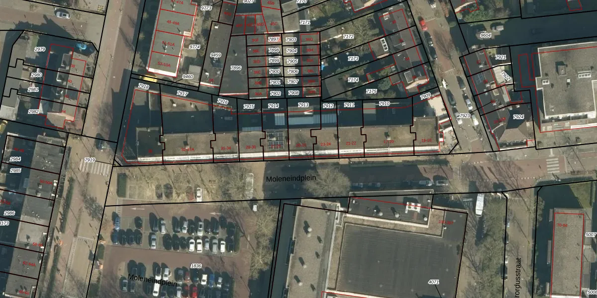 Het perceel waarop Moleneindplein 26 staat heeft een oppervlakte van 194 m². Dit is een middelgroot perceel. De perceeloppervlakte wordt geregistreerd door het Kadaster. Gedetailleerde informatie over de maten van dit perceel kunt u vinden in het rapport Kadastrale kaart met maatvoering van Moleneindplein 26.