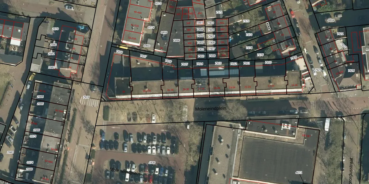 Moleneindplein 30 is gelegen op kadastraal perceel VUG00B7915. Deze kadastrale aanduiding is uniek en wordt gebruikt door het Kadaster om eigendomsrechten en andere zakelijke rechten vast te leggen. Het perceel maakt onderdeel uit van de kadastrale gemeente Vught.