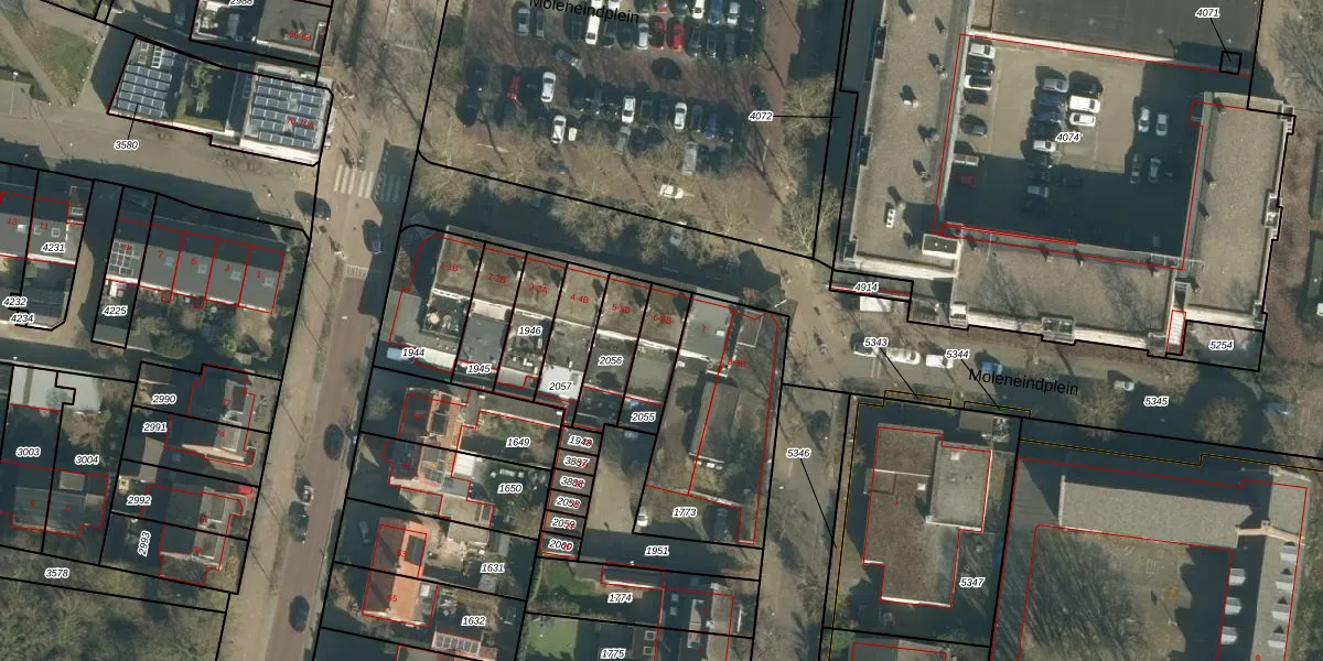 Moleneindplein 6-B is gelegen op kadastraal perceel VUG00D2055. Deze kadastrale aanduiding is uniek en wordt gebruikt door het Kadaster om eigendomsrechten en andere zakelijke rechten vast te leggen. Het perceel maakt onderdeel uit van de kadastrale gemeente Vught.