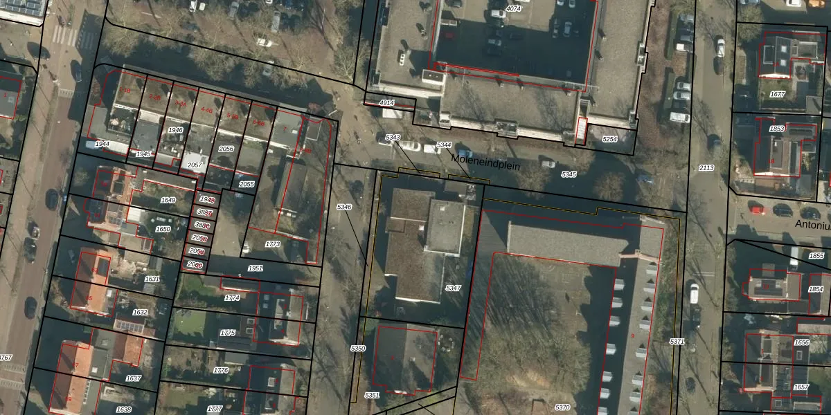 Het perceel waarop Moleneindstraat 1-E staat heeft een oppervlakte van 867 m². Dit is een groot perceel. De perceeloppervlakte wordt geregistreerd door het Kadaster. Gedetailleerde informatie over de maten van dit perceel kunt u vinden in het rapport Kadastrale kaart met maatvoering van Moleneindstraat 1-E.