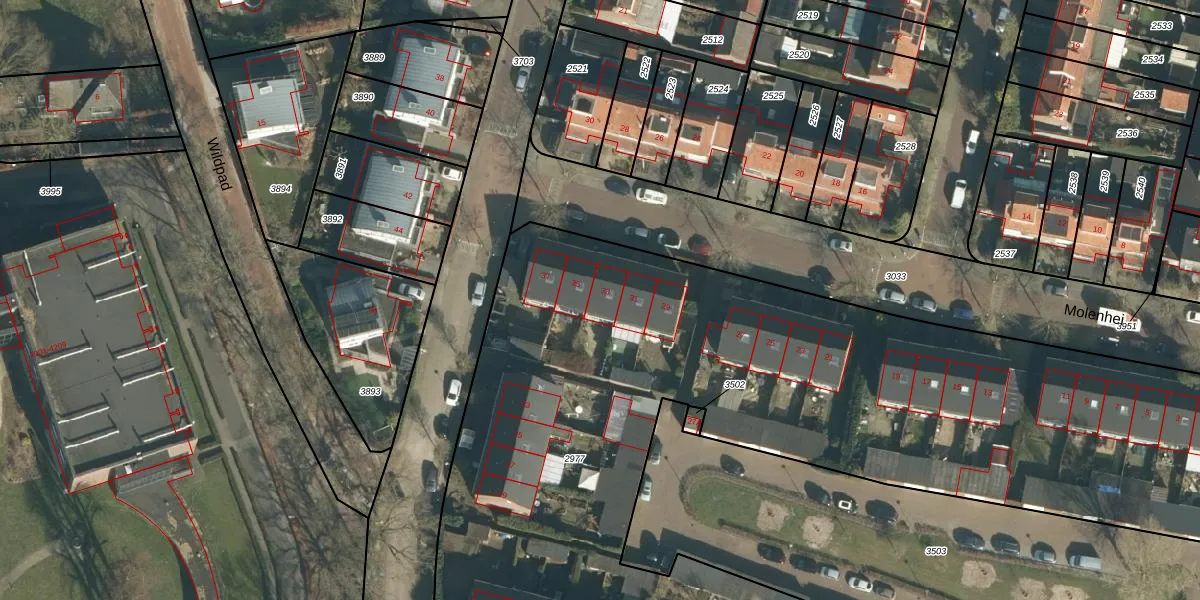 Molenhei 33 is gelegen op kadastraal perceel VUG00E2977. Deze kadastrale aanduiding is uniek en wordt gebruikt door het Kadaster om eigendomsrechten en andere zakelijke rechten vast te leggen. Het perceel maakt onderdeel uit van de kadastrale gemeente Vught.