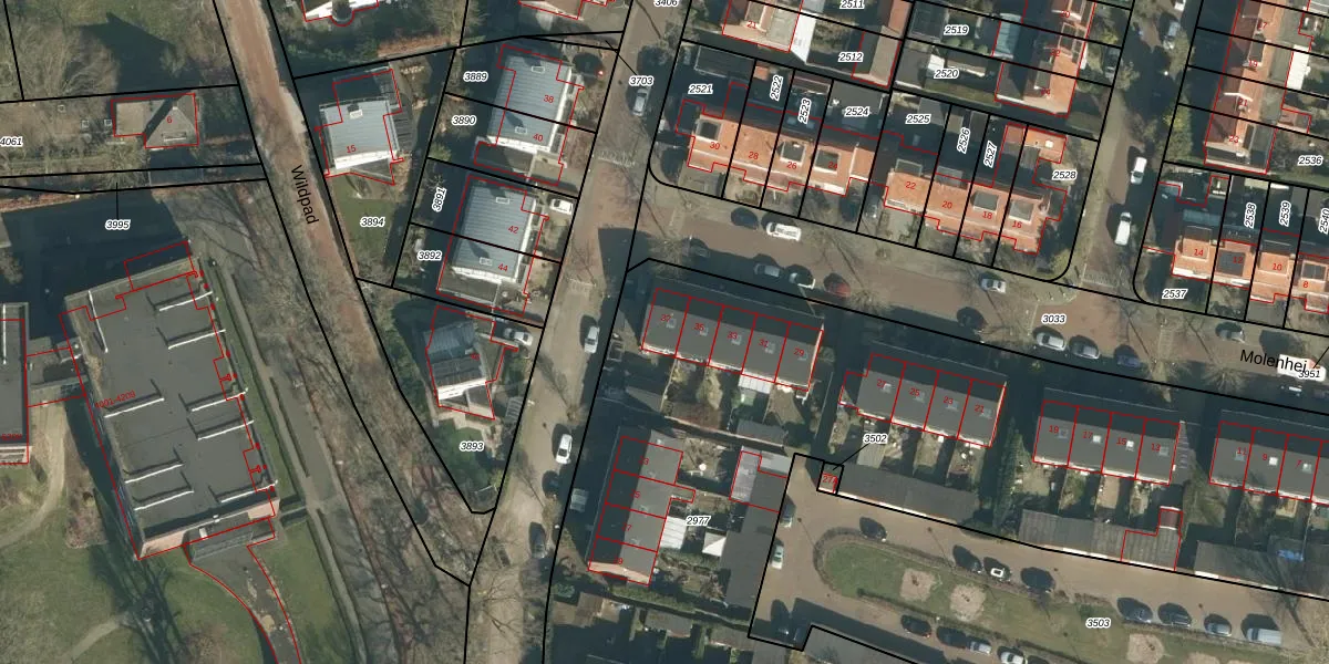 Het perceel waarop Molenhei 37 staat heeft een oppervlakte van 7600 m². Dit is een zeer groot perceel. De perceeloppervlakte wordt geregistreerd door het Kadaster. Gedetailleerde informatie over de maten van dit perceel kunt u vinden in het rapport Kadastrale kaart met maatvoering van Molenhei 37.