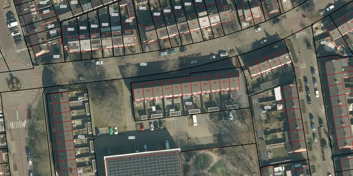 Molenstraat 52 is gelegen op kadastraal perceel VUG00D5089. Deze kadastrale aanduiding is uniek en wordt gebruikt door het Kadaster om eigendomsrechten en andere zakelijke rechten vast te leggen. Het perceel maakt onderdeel uit van de kadastrale gemeente Vught.