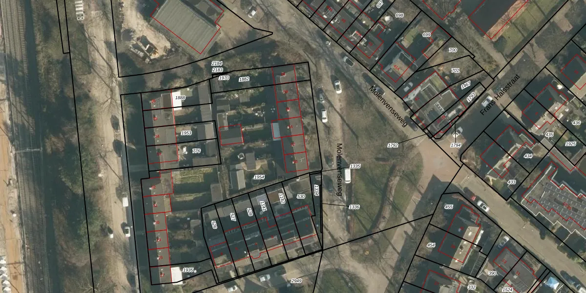 Het perceel waarop Molenvenseweg 52 staat heeft een oppervlakte van 2025 m². Dit is een zeer groot perceel. De perceeloppervlakte wordt geregistreerd door het Kadaster. Gedetailleerde informatie over de maten van dit perceel kunt u vinden in het rapport Kadastrale kaart met maatvoering van Molenvenseweg 52.