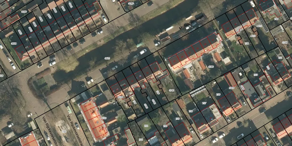 Gebruik de zoekbalk of klik op een perceel voor informatie over de adressen binnen dit perceel.