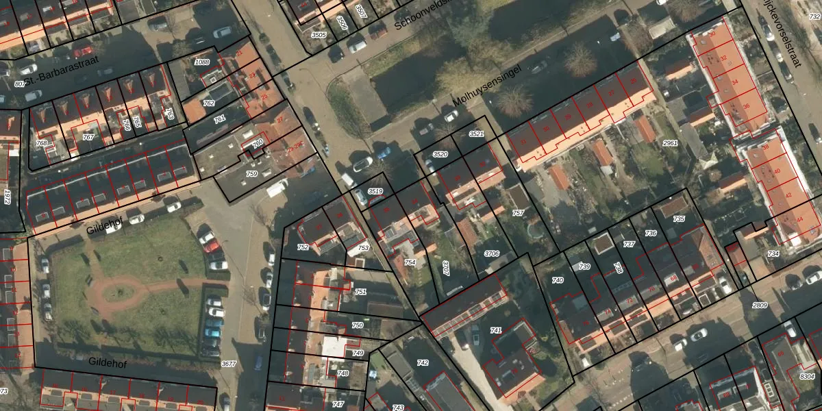 Molhuysensingel 34 is gelegen op kadastraal perceel VUG00L3707. Deze kadastrale aanduiding is uniek en wordt gebruikt door het Kadaster om eigendomsrechten en andere zakelijke rechten vast te leggen. Het perceel maakt onderdeel uit van de kadastrale gemeente Vught.